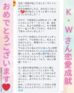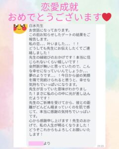 とてもお悩みでしたが、縁結びと縁切りの同時施術により、見事恋を叶えられました。