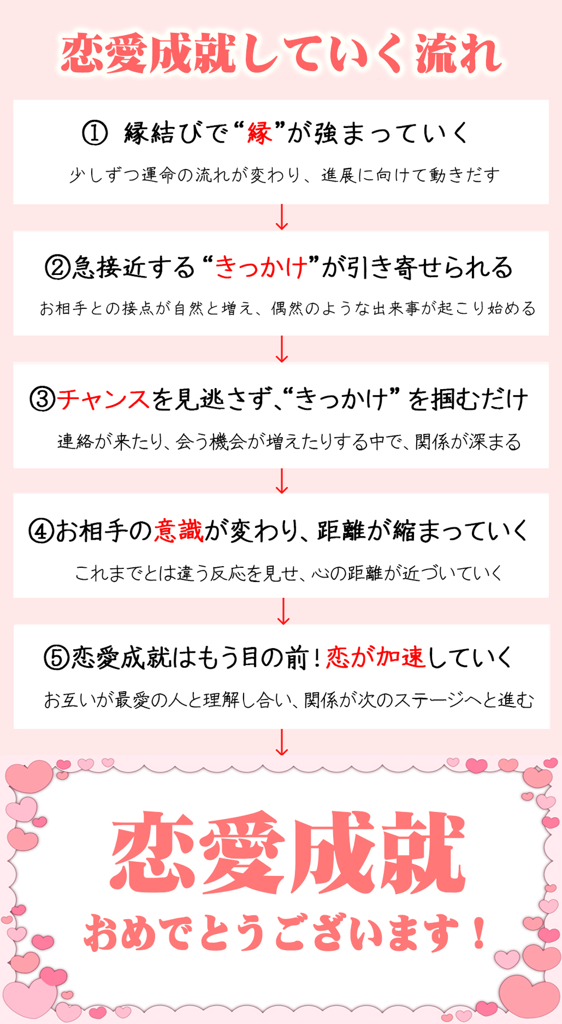 しかし、縁”を強くすることで、きっかけが引き寄せられ、これまで動かなかった恋愛も前に進み、思いもよらない変化が起こるのです。